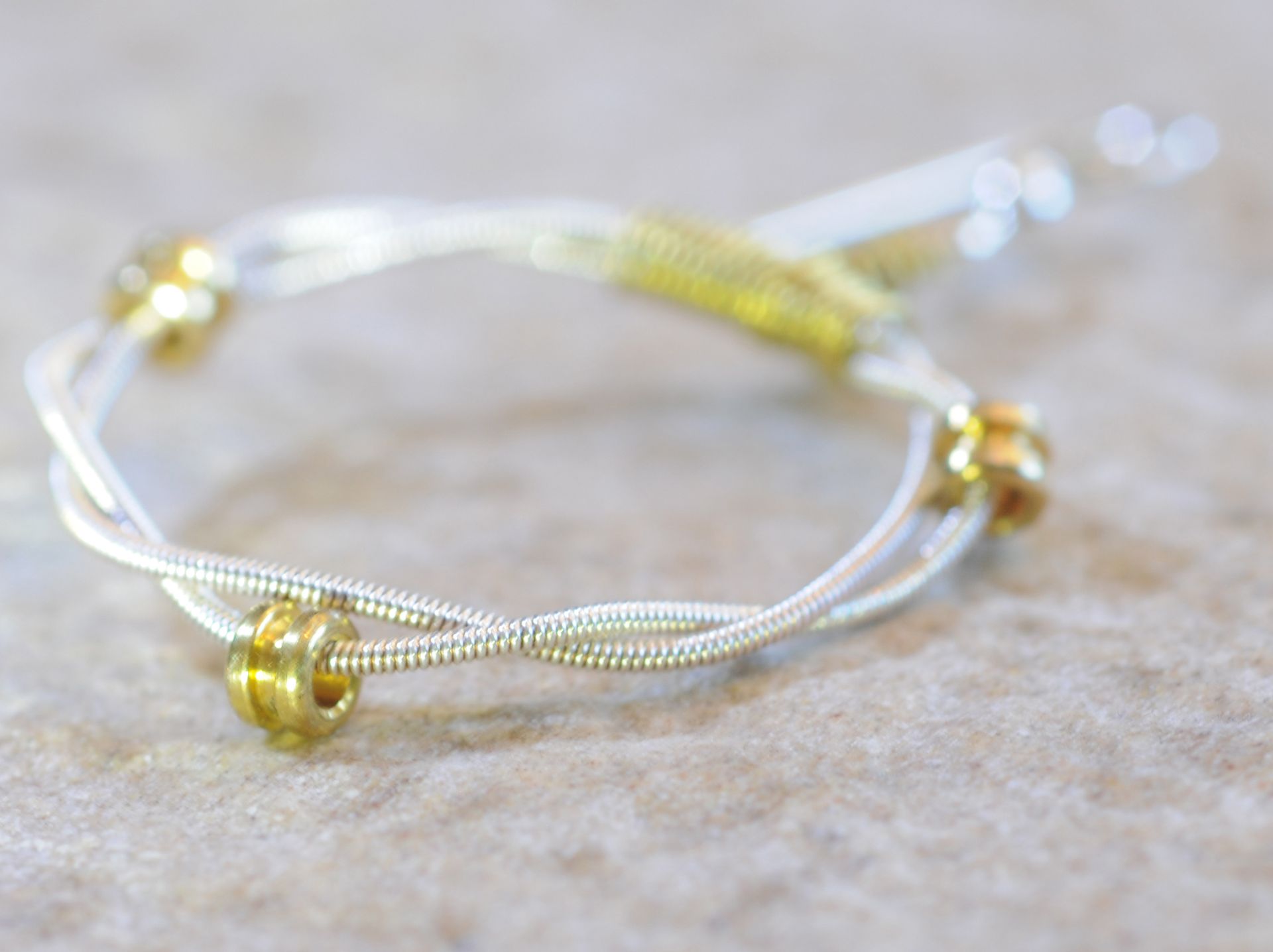 Recycled guitar string earrings.