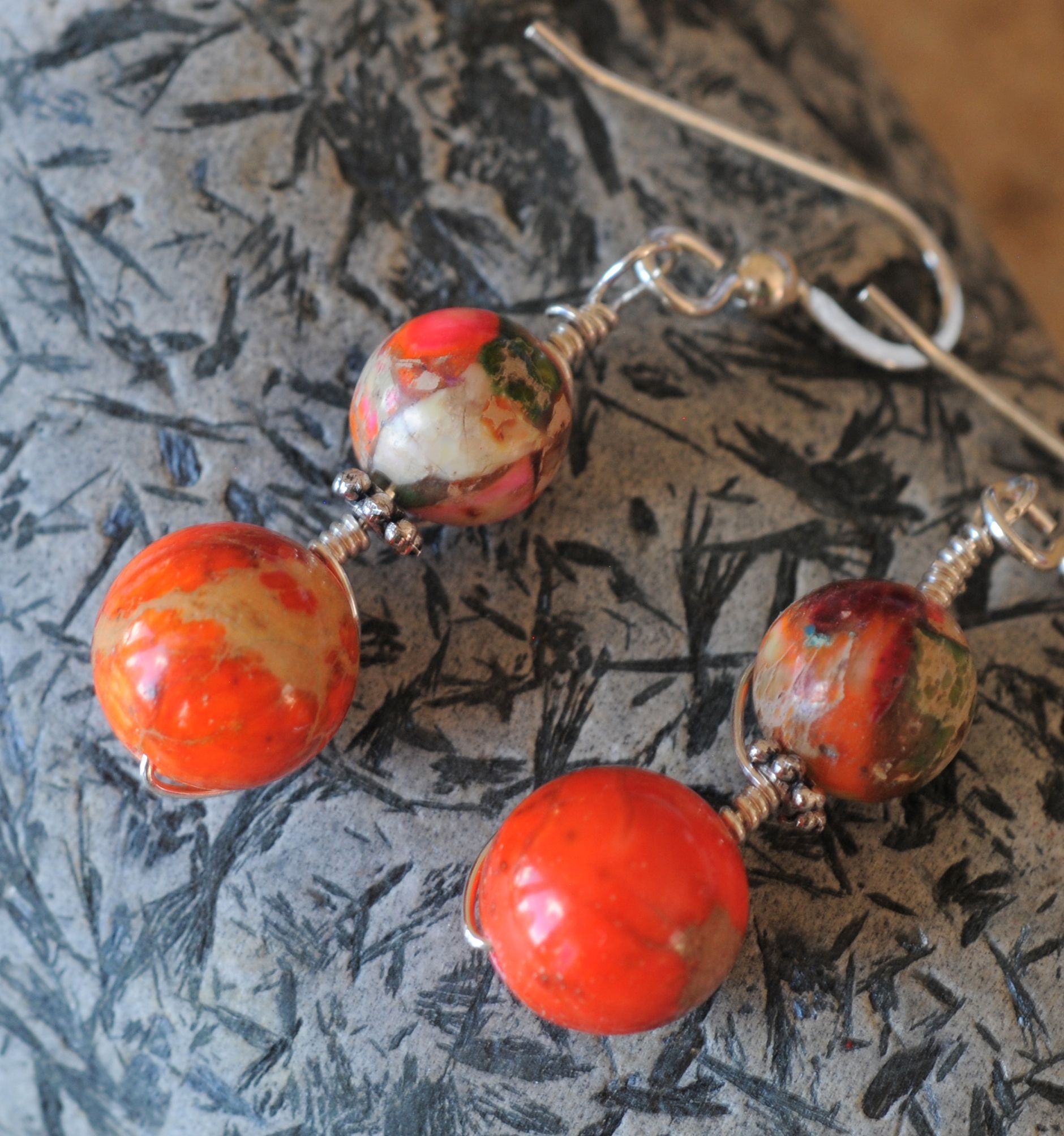 Unique handmade silver and copper jewelry. Bead earrings, bead jewelry, guitar string jewelry. Photo greeting cards. Flower photography.